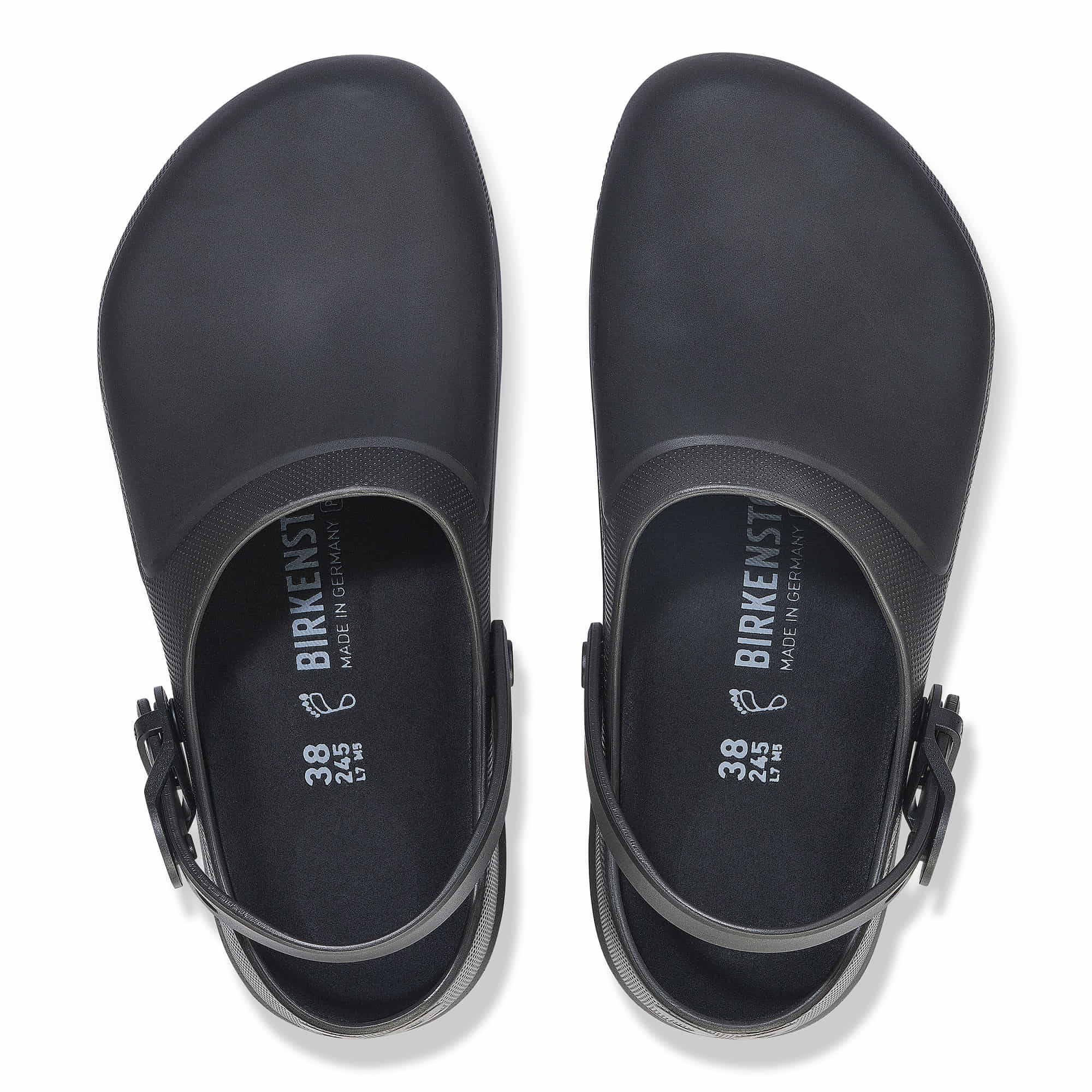 Safety and comfort all in one: The Birki Air Antistatic counts among our popular clog classics. Identifiable by its raised form, this clog made from antistatic polyurethane offers perfect comfort with maximum safety and firm grip. The large air inlets at the forefoot keep the foot climate permanently fresh. The original BIRKENSTOCK PU footbed can be replaced if necessary and, like the clog, has been tested in accordance with EN ISO 20347:2022. The clogs permanently discharge while in contact with the ground and thereby prevent electrostatic discharge. Stability is further enhanced by the adjustable ankle strap. The PU sole is oil- and grease-resistant.