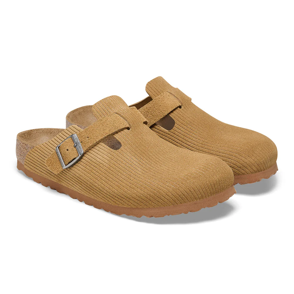 The BIRKENSTOCK Boston clog is a veritable classic that can easily be worn all year round. This version boasts a casual corduroy style. Perfect for authentic streetstyle outfits! The color-coordinated outsole rounds off the shoe's look of sophistication. The upper is made from soft, embossed suede.